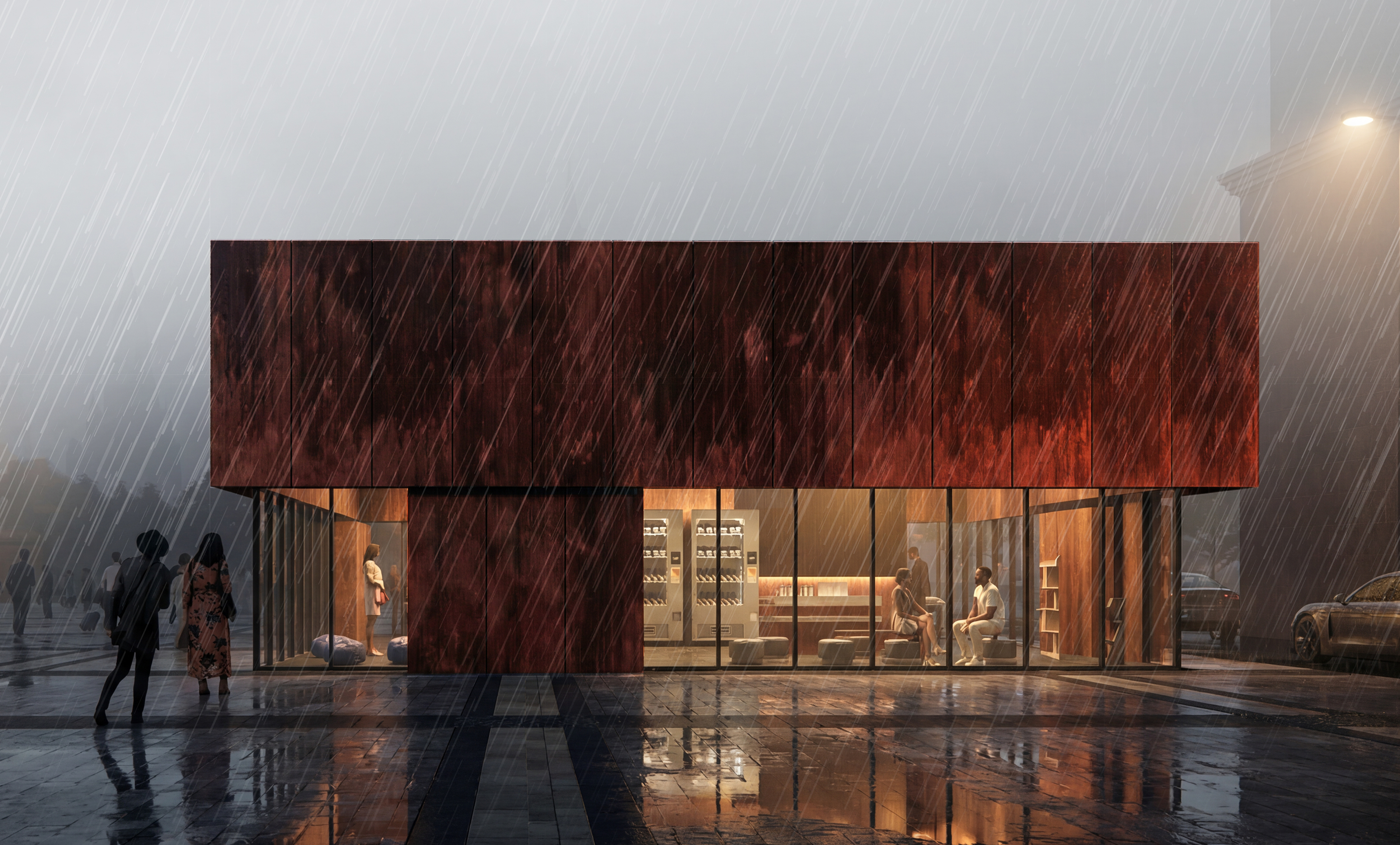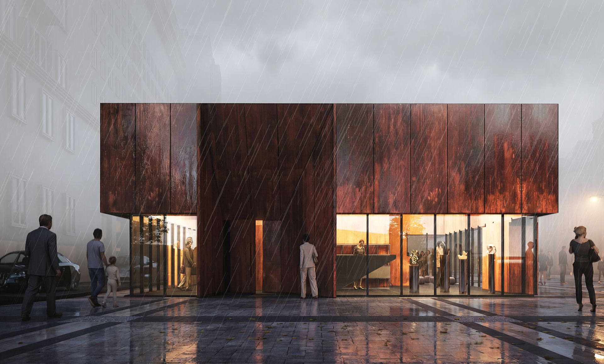 Объект задуман как выразительный лендмарк, гармонично вписывающийся в существующую структуру улицы – благодаря материалу, масштабу и лаконичной форме.